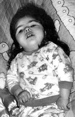 Molly takes her food through a tube into her stomach. She cannot walk. She has to wear diapers.