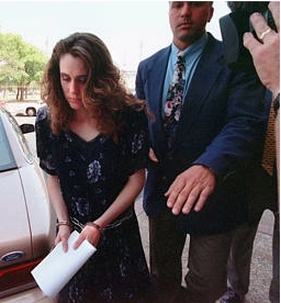 Cynthia Lyda is led into the John Wood Federal Courthouse in San Antonio in shackles on April 29, 1998, just before she was to appear in civil court for a custody hearing concerning her children. She has been diagonosed with Munchausen Syndrome, a disorder which causes mothers and other caregivers to cause illnesses in children to gain admiration and respect.
