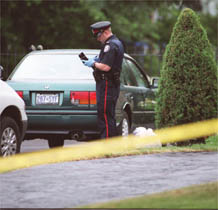 "We heard the hollering and came out to look," said a neighbour. "That's when the officer opened the trunk of the car and saw the bodies.