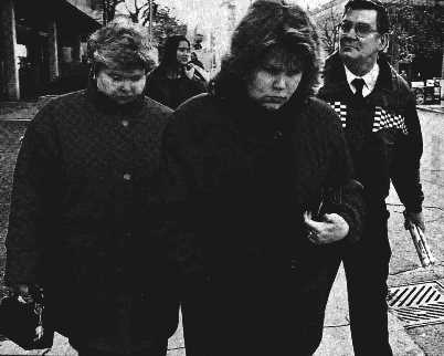 TANNIS TOOHEY/TORONTO STARGRIM PROCEEDINGS: Heather, the sister of Ralph Hadley, is flanked by parents Christina and Gerald Hadley yesterday.The inquest is also expected to hear from Gillian's sister and her husband, who helped Hadley monitor his wife. Baines described Gillian as an uncaring mother who left her three children, Michael, Faith and Chase, unattended, and an irresponsible housewife who cared less about household chores and mismanaged home finances. He also said she was "fired from a bank for fraud." "I personally felt she may have taken advantage of the situation and seen (the marriage with Ralph) as a way out," Baines told coroner Dr. Bonita Porter. "I am of the opinion that she was not a caring mother." After Hadley was put under a restraining order as a result of his Jan. 7 arrest, Baines said Gillian started to "play games" with his access to Chase the only child the couple shared biologically. He testified he once overheard a conversation between Gillian and her friend Kimberley Nicely, in which she suggested "she's trying to get as much as she can (from the divorce) and she wanted to drive (Hadley) crazy." Despite all the problems between the two, Baines said, Hadley still stood by Gillian and couldn't understand the terms imposed on him in the restraining order. "In regards to the charges and the children's aid society and the court and the lawyers, he felt his rights as a human being were violated, that he's a non-person," he said. Baines acknowledged that Hadley was loud and hard-headed but insisted that his cousin was "verbal but not abusive." "He was very loud and always tried to enforce his point of view on others," he said, recalling he played the role of a devil's advocate with Hadley as kids growing up in the same Scarborough home. Baines also told the inquest that Hadley had an "outdated" view of romance between men and women, and "felt that marriage would be more traditional (with) men going to work and wives staying home." After the January confrontation, Gillian had expressed her fear of Ralph Hadley and her plan to move to Port Perry with the children, Baines said. Baines said that on several occasions, both Hadley and his father Gerald told him that Gillian "deserved a bullet to the head" for breaking the promise she made with Hadley that neither of them would have affairs or get physical against each other. But other than demanding that Hadley not make such "ridiculous" comments to him, Baines did not report the verbal threats to the authorities. "I believed she was afraid of him in her own mind," he testified, adding that he did not feel the family was fuelling Hadley's rage against Gillian. He said the two families blamed both for their failed marriage. On June 20, 2000, Hadley sneaked into their Pickering home and gunned Gillian down in the foyer. Baines said his cousin and Gillian were involved in divorce proceedings a month before their deaths, and he appeared to have moved on with his life when they last saw each other on Fathers' Day at Hadley's parents' house. "He was no longer angry and you couldn't push his button anywhere. He became very quiet and withdrawn. He seemed very calm," Baines said. "I think (by then) he had already made up his mind what action he was going to take." Baines still remembered his cousin's last words to him that day when he warned Hadley to watch Chase, then about a year old, who was playing with the glass door at the house. "Don't tell me how to look after my child," Hadley responded. The inquest continues today.