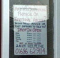 The basic message to anyone - you do not have to suffer, and you are not alone. Call the Montgomeryshire Family Crisis Centre's 24 hour helpline on (01686) 629 114.